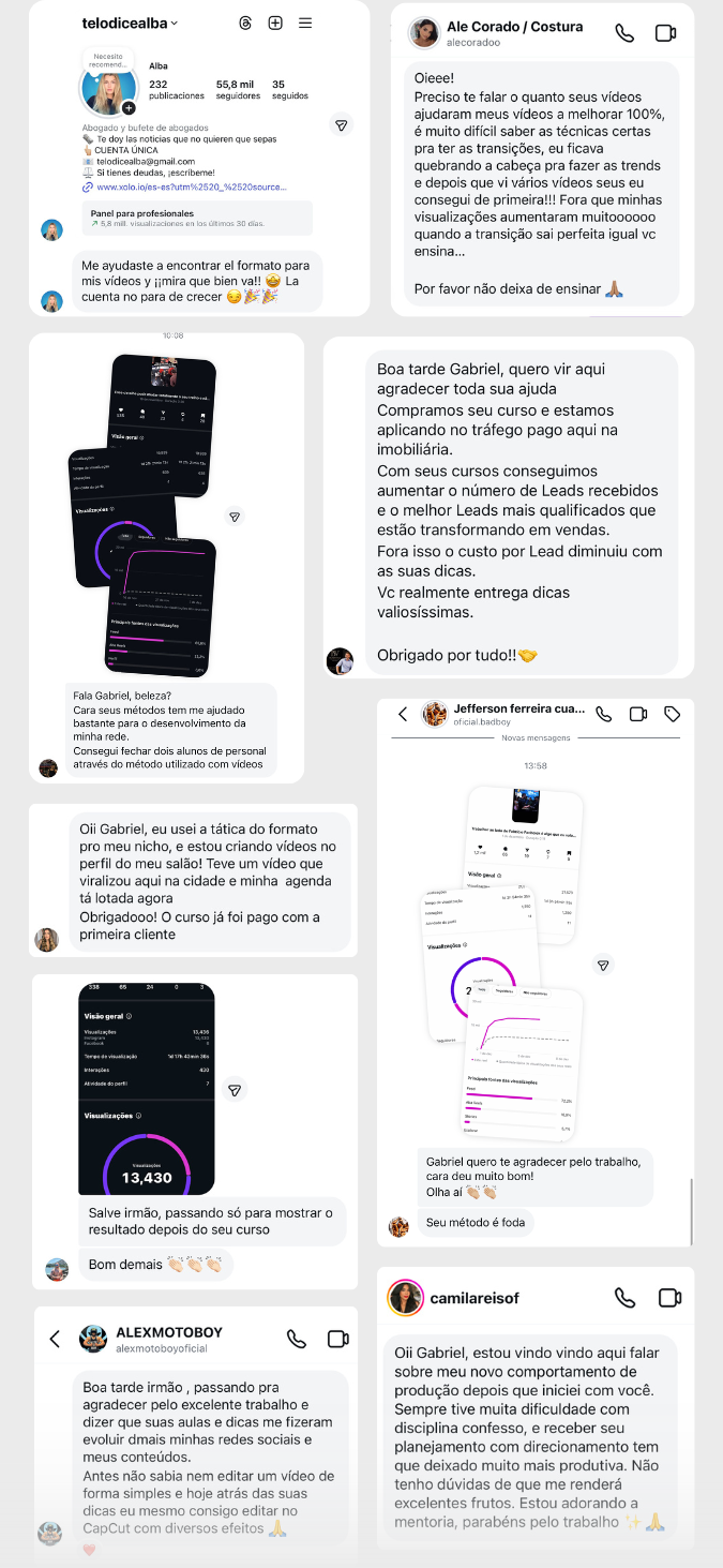 Se você entrou no Instagram agora, vai descobrir o por que as pessoas não crescem e você vai aprender o que tem que fazer para crescer e se tornar uma referência da pessoa que já chegou neste patamar no Brasil. Grandes figuras públicas de diversos nichos me procuram diariamente para ajudar com seus Instagram e vídeos. É perda de tempo entrar no Instagram e não saber o que postar e como editar seus vídeos de forma rápida.